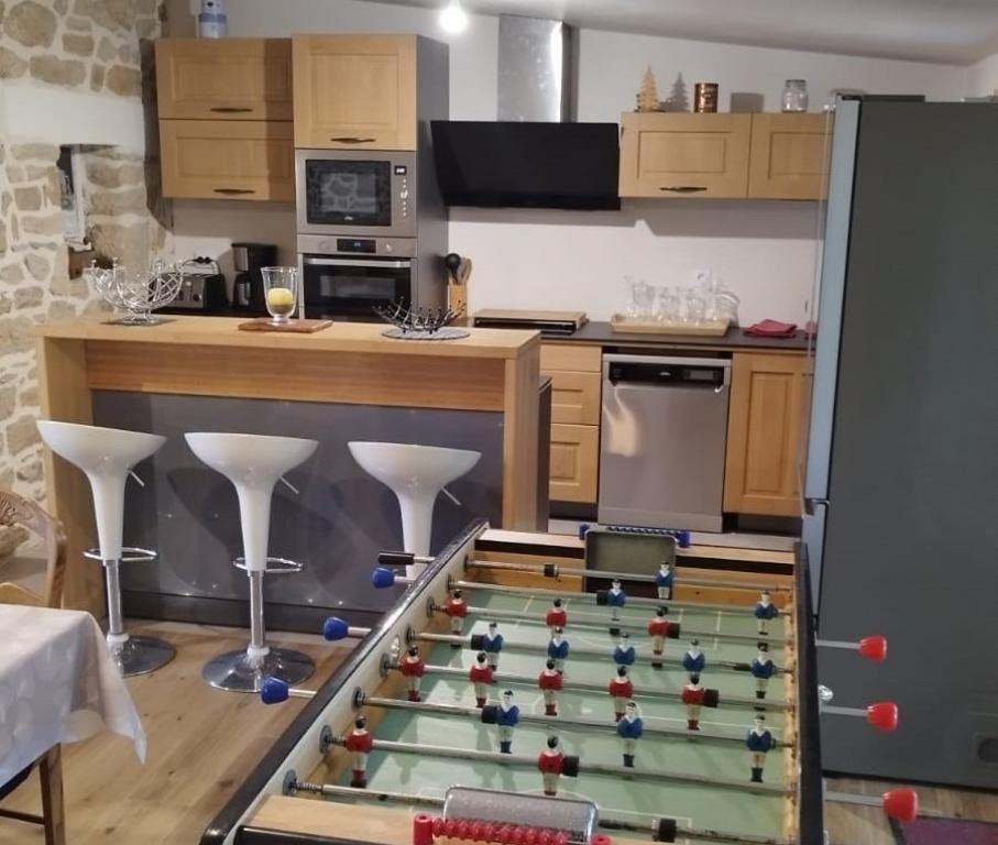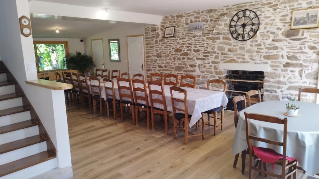 À l'intérieur du gîte vous trouverez :Cuisine Equipée et Casseroliers & Vaisselle pour grands groupes / Grand Frigo Européen, Four, Plaques induction, Cafetières filtre, Bouilloires, ...