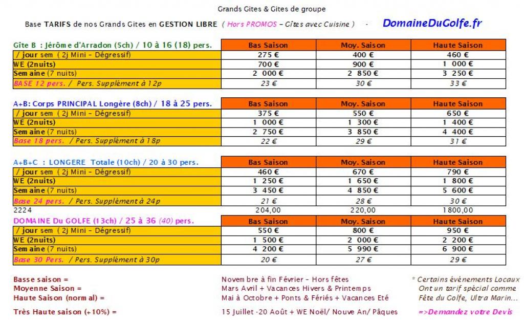 Demandez un DEVIS adapté à votre cas ou pour davantage de personnes et gites en complément jusque 38 personnes!