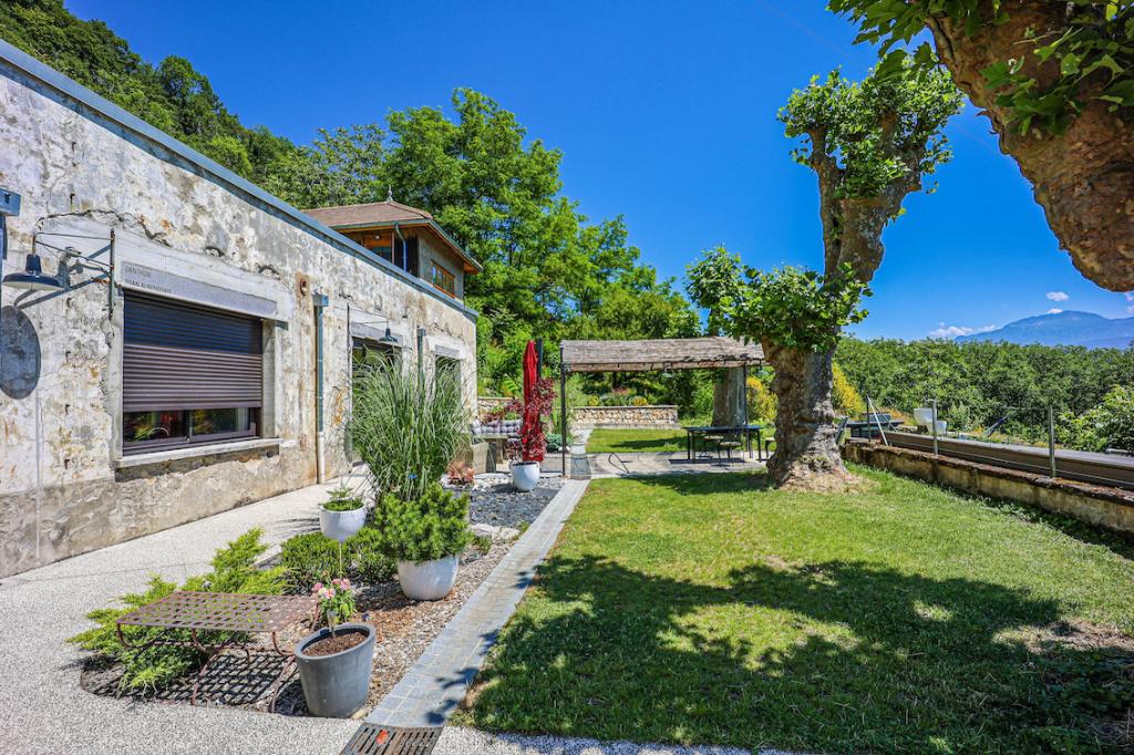 À l’extérieur, une grande terrasse avec vue panoramique sur le Vercors est l’endroit idéal pour partager un barbecue, organiser un apéritif au coucher du soleil ou simplement profiter du calme environnant. Le vaste jardin ravira petits et grands avec trampoline et bac à sable, tandis que l’espace bien-être avec jacuzzi et nage à contre-courant promet des moments de détente tout au long de l’année.