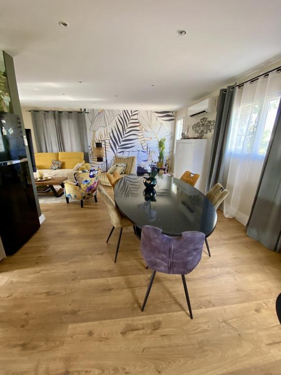 AU RDCH, GRAND SALON S'OUVRANT SUR LA PISCINE, SAUNA, HAMMAM, CUISINE OUVERTE, SALLE A MANGER, 1 CHAMBRE, 1 SDB, 1 WC.