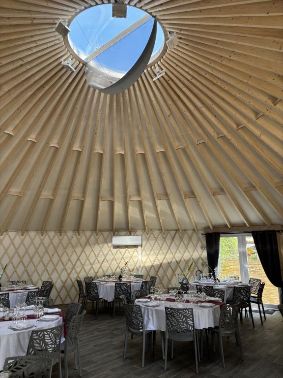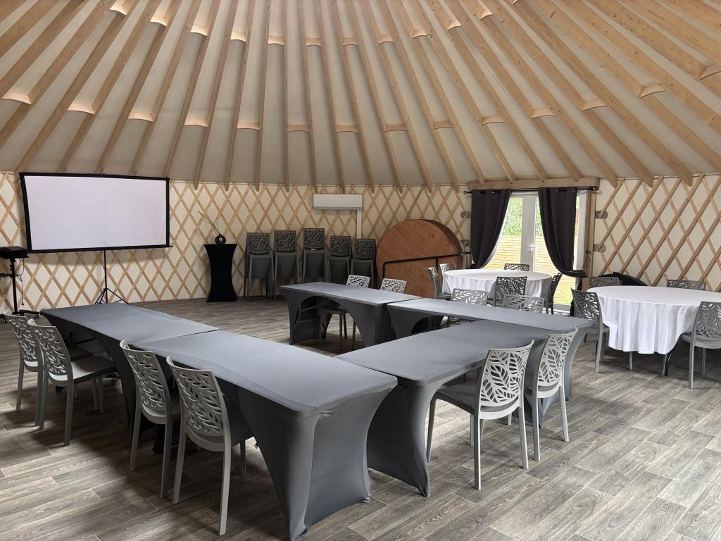 Pour vos événements nous proposons une salle de 100 m2 à la location, une magnifique salle ronde, moderne et insolite pour vos réunions, seminaires ou autre repas en famille.