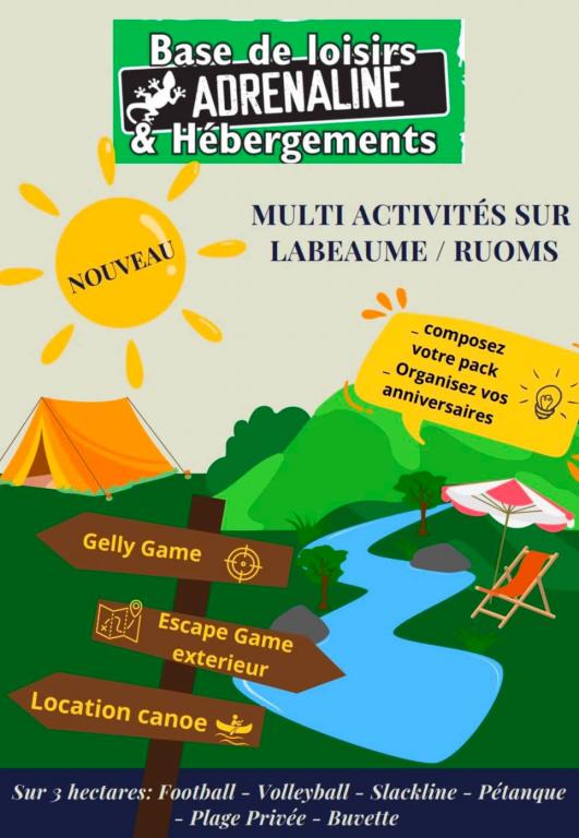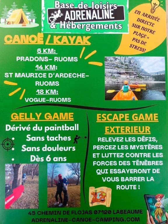 Les sports à pratiquer autour du gîte : _ Location de canoë sur place, en arrivée directe sur notre base. (Pas de contrainte horaire de retour) _ Gelly games _ Explor'games _ Speleo _ VTT...