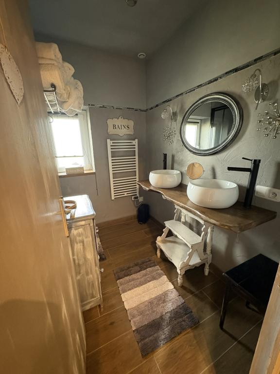 À l'intérieur du gîte vous trouverez :Cuisine toute équipée, réfrigérateur américain ,1 réfrigérateur dans la chaufferie, lave vaisselle, micro-ondes, cafetière, machine à dosettes dolce Gusto, robot Mr cuisine, grille pain, bouilloire, appareils à raclette, appareils à fondu, lave linge, sèche linge.