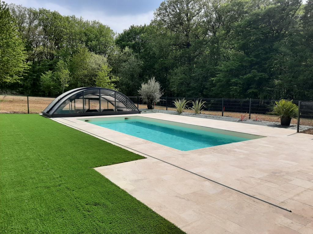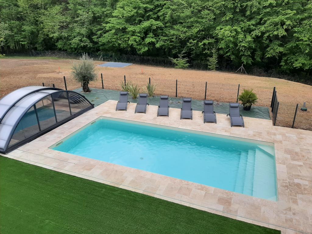 Le gite à une piscine de 9 x 4 m, sur 1.50m d'eau, chauffée et couverte, une plage de 80 m² autour de la piscine et 80 M² de pelouse, un espace detente dans un poolhouse avec salon de jardin, barbecue, bain de soleil attenant à la piscine et baby-foot.